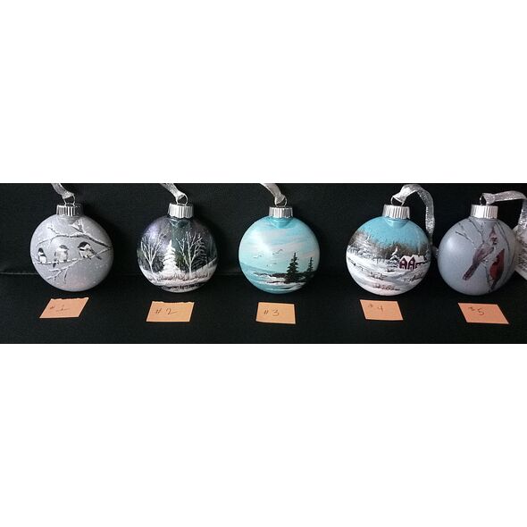 Christmas ornament hand painted by local artist Cyndy Quello.