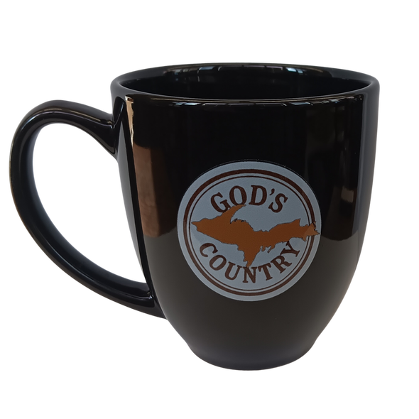 Our God's Country 16 oz. Ceramic Bistro Mug is perfect for coffee or tea. The C-handle design makes it easier to grab your mug on the go. Multiple colors available. Microwave safe, handwash only. Purchase your mug blank or you can personalize it by adding a custom decal that is extremely durable, waterproof, microwave safe, weather resistant and are made to last. Superior adhesion keeps your decals on for the long haul. Decal is approximately 2" x 2"